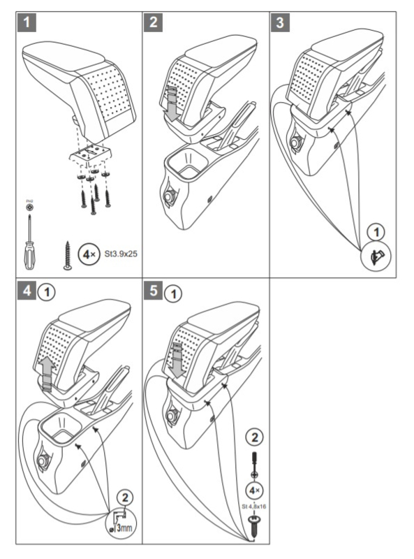 - la couvercle de l’accoudoir rembourrée