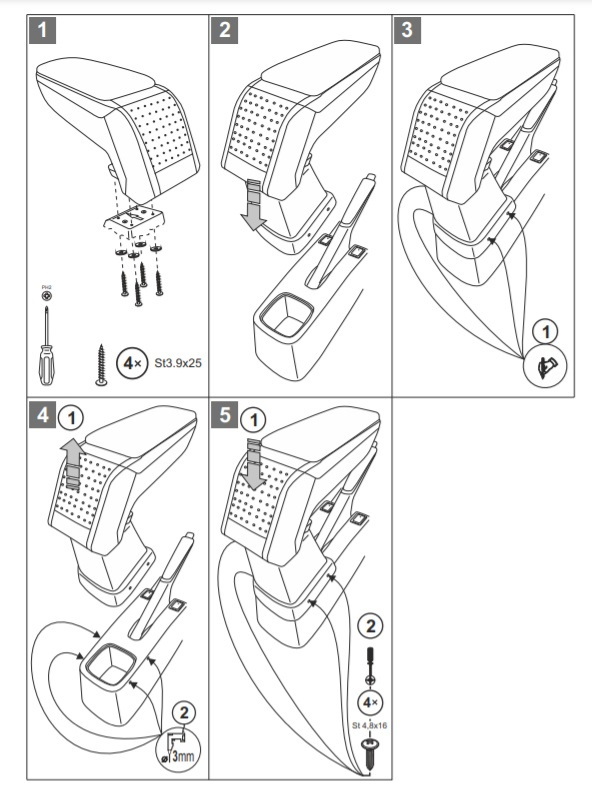 - la couvercle de l’accoudoir rembourrée