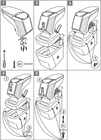 - les couleurs de base: le corps de l’accoudoir est de noir mate, des enjoliveurs noirs brillant ou gris métallisé