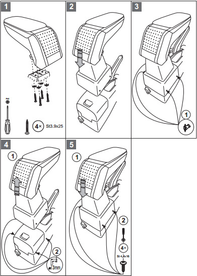 - la couvercle de l’accoudoir rembourrée