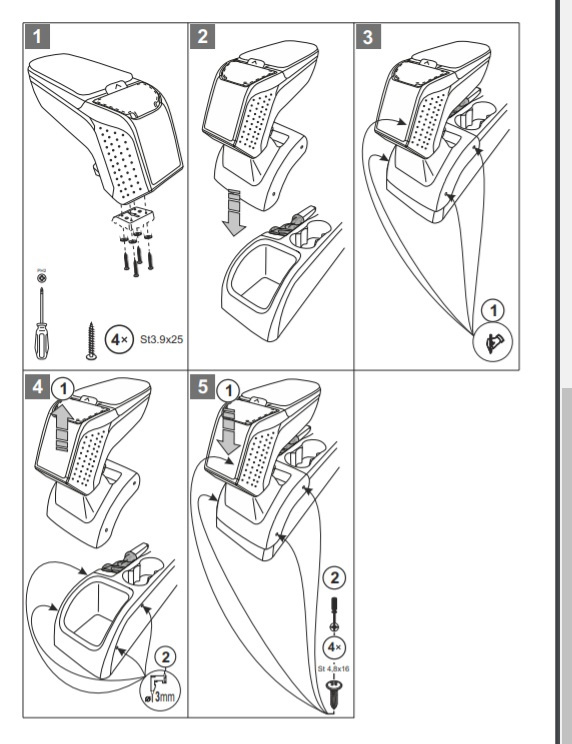 - les couleurs de base: le corps de l’accoudoir est de noir mate, des enjoliveurs noirs brillant ou gris métallisé