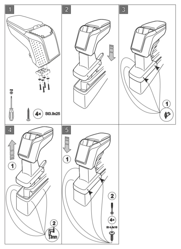 - les couleurs de base: le corps de l’accoudoir est de noir mate, des enjoliveurs noirs brillant ou gris métallisé